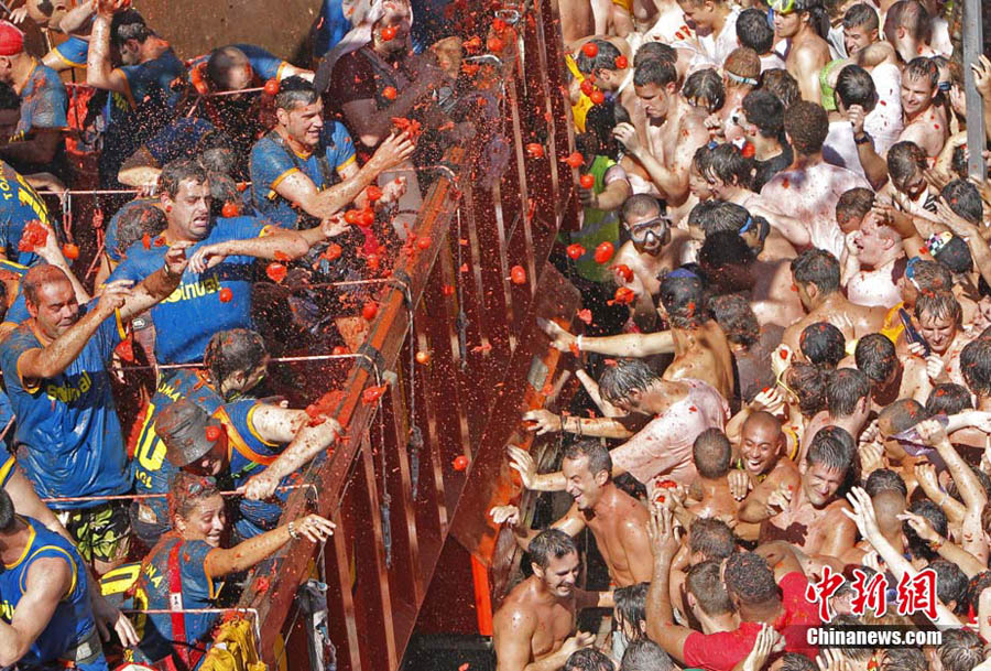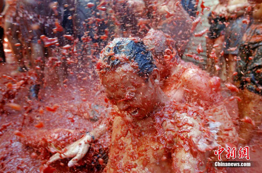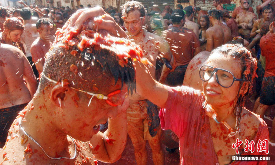 8月25日,西班牙東南部小鎮Bunol迎來傳統的西紅柿狂歡節。超過4.5萬人參加了此次活動,預計消耗了超過100噸西紅柿。這也是世界上最大規模的“番茄大戰”。