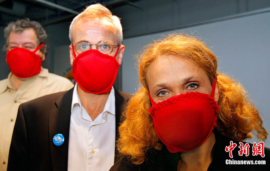 當地時間9月28日,科學家博德納在美國麻省理工學院博物館公開展演了她的發明——“應急胸罩”。該款胸罩可以在瞬間變成防毒面具,保護使用者免遭致命生化制劑的攻擊。憑借這款“防毒胸罩”,博德納曾獲得2009年“搞笑諾貝爾獎”的公共健康獎。