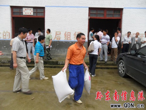 本港訊 (趙倩 實習記者 胡雁 攝影報道)6月23日,省紅十字會第二次向岑鞏縣天星鄉捐贈6萬元抗旱救災物資。