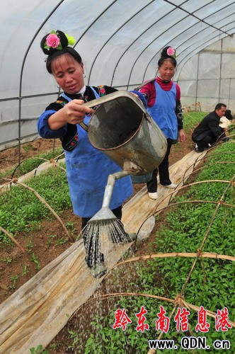 凱里市三棵樹鎮賞郎村苗族村民在辣椒苗圃里澆水