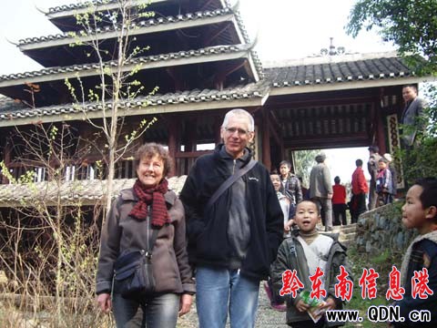 本港訊 (周志光 攝影報道)春節以來,馳名中外的貴州黎平地坪風雨橋吸引眾多游客慕名而來。地坪風雨橋是貴州境內規模最大、造型最美的一座風雨橋,是貴州省侗族風雨橋建筑中唯一的國家級重點文物保護單位,每年都有數萬余中外游客前往參觀。圖為2月28日到地坪風雨橋開心一游的法國游客。