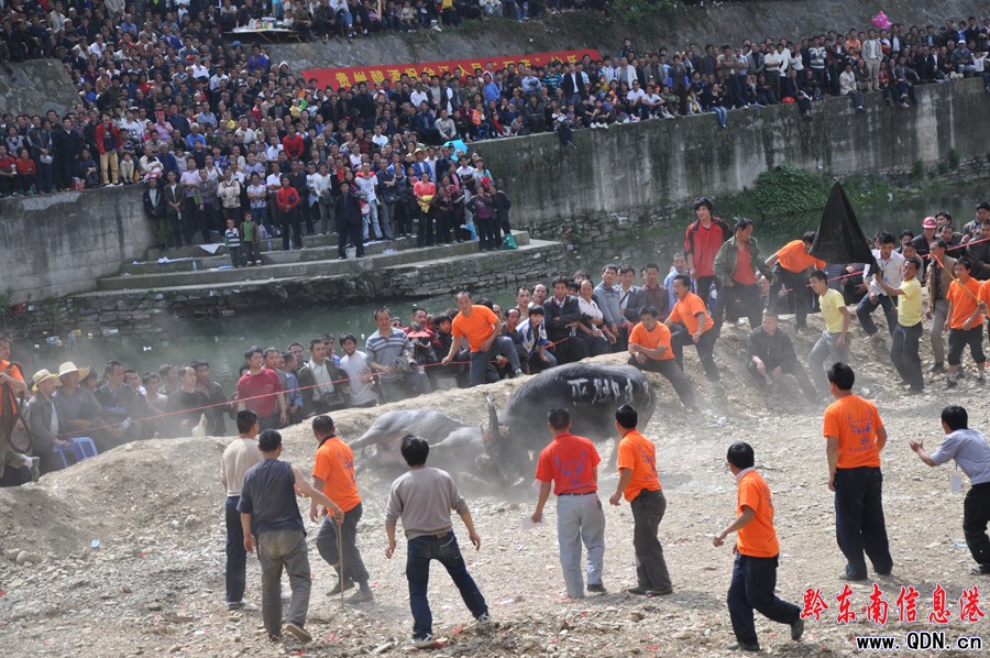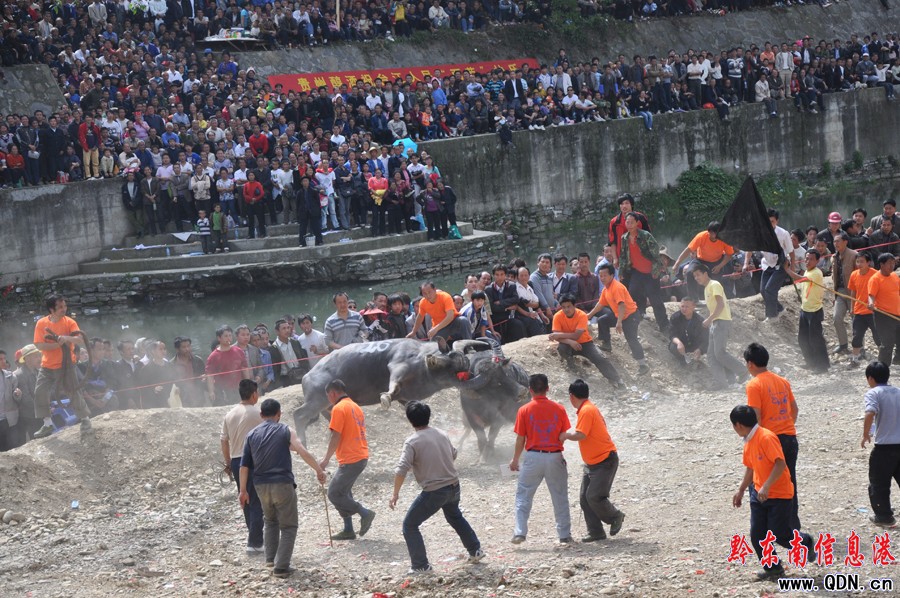 本港訊 (記者 楊懿 李麗娟 攝影報(bào)道)4月27日,貴州苗族姊妹節(jié)上,斗牛比賽在臺(tái)江縣老大橋河沙壩舉行。據(jù)悉,此次斗牛比賽將歷時(shí)3天(27日——29日),氣氛極為熱烈。