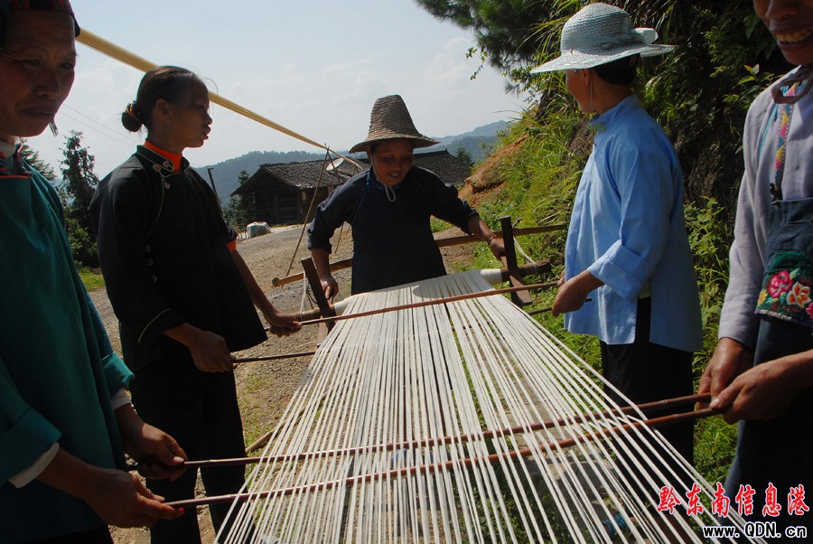 本港訊 (特約記者 黃曉海 攝影報道)當日是二十四節氣的“立秋”,隨著農事的減少,丹寨縣揚武鄉排倒村的苗族村民紛紛走出家門,利用農閑的時間“牽紗”,為制作苗族服飾作準備。“牽紗”是當地苗族婦女們所必須掌握的一門服飾制作技能,也是苗族服飾制作最基礎的步驟。據了解,丹寨縣的“苗族嘎鬧服飾制作技藝”在2007年入選國務院公布的第二批國家級非物質文化遺產名錄。