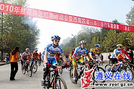據遵義在線 昨天早上,紅花崗區2010年紅色運動會暨西南省(市)自行車邀請賽開賽。當天,來自西南四省(市)及遵義市的近300名自行車運動員參加了自行車挑戰賽,經過激烈的角逐,我州運動員陸正虎奪得男子組冠軍。