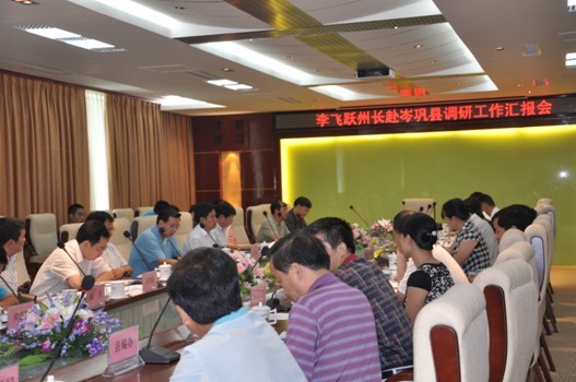在匯報會上,聽完岑鞏縣工作情況匯報后,李飛躍州長對岑鞏縣今年來工作取得的成績給予充分肯定,同時要求岑鞏縣要充分利用黔東南東大門這一區位優勢,一是要以工業化、城鎮化加快推進縣城域經濟發展;二是黔東這一片要充分考慮跨區域合作,按大城市規劃,以中等城市建設起步,岑鞏縣的規劃建設要打好思州文化這張牌,搞好城市定位,突出主體風格,抓好與州政府在這一片的總規銜接和功能區互補;三是鄉鎮機構改革一定要與未來發展相符,要認真研究,設置好機構,強公共服務、社會職能和城鄉一體化推進;四是要自加壓力,確保全年稅收任務的完成。