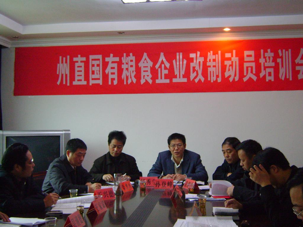據(jù)黔東南人民政府網(wǎng) 12月7日上午9:00,孫登峰副州長在州糧食局八樓會議室出席州直國有糧食企業(yè)改制工作動員培訓(xùn)會,會議傳達(dá)學(xué)習(xí)了國務(wù)院,省委、省政府,州委、州政府關(guān)于糧食企業(yè)改制工作的相關(guān)文件精神,州政府副秘書長楊秀學(xué)就州直國有糧食企業(yè)改制工作作了動員部署,并組織學(xué)習(xí)了州直糧食企業(yè)改制工作方案,州直相關(guān)部門負(fù)責(zé)人及州直糧食企業(yè)改制工作領(lǐng)導(dǎo)小組成員參加會議。