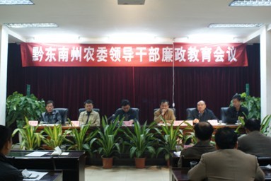 據黔東南人民政府網 為進一步強化黨員干部的宗旨意識、法紀意識和廉潔從政意識,2010年12月8日,黔東南州農委領導干部廉政教育會議在營盤坡七樓會議室召開。黔東南州農委領導班子成員、副縣級以上干部、科級領導干部、高級技術人員出席了會議。會議由州農委黨組副書記楊繼紅主持。