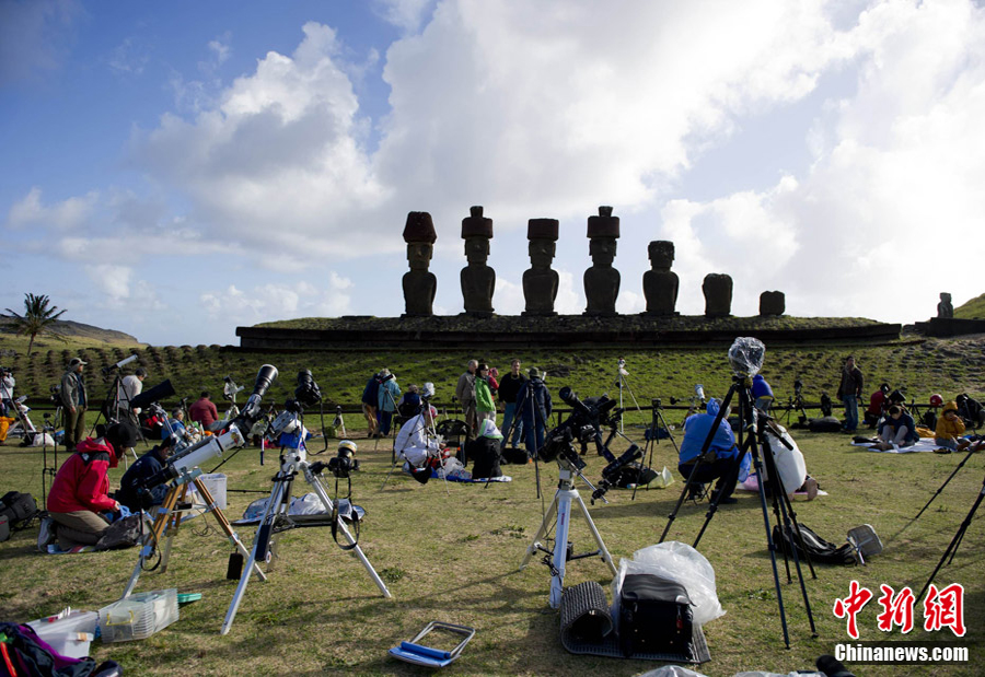 7月11日,數以千計的游客涌向位于太平洋東南部的法屬波利尼西亞群島(復活節島),觀看在南太平洋群島上350年一遇的日食景象。