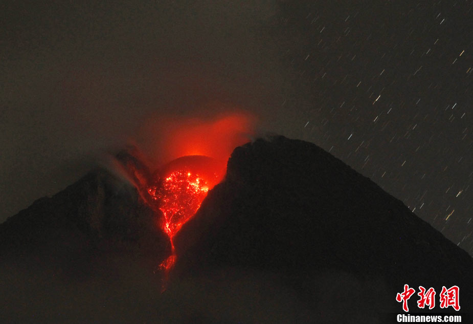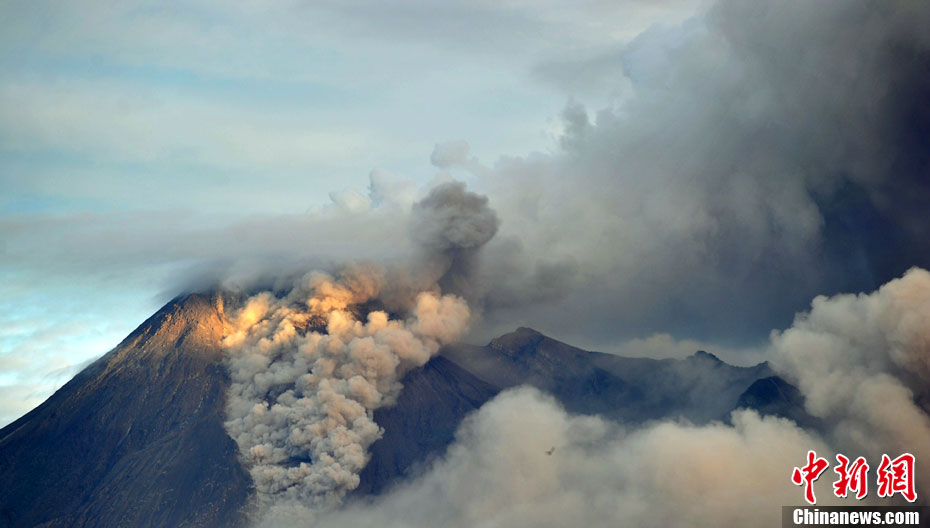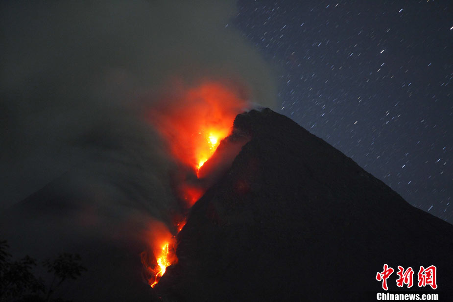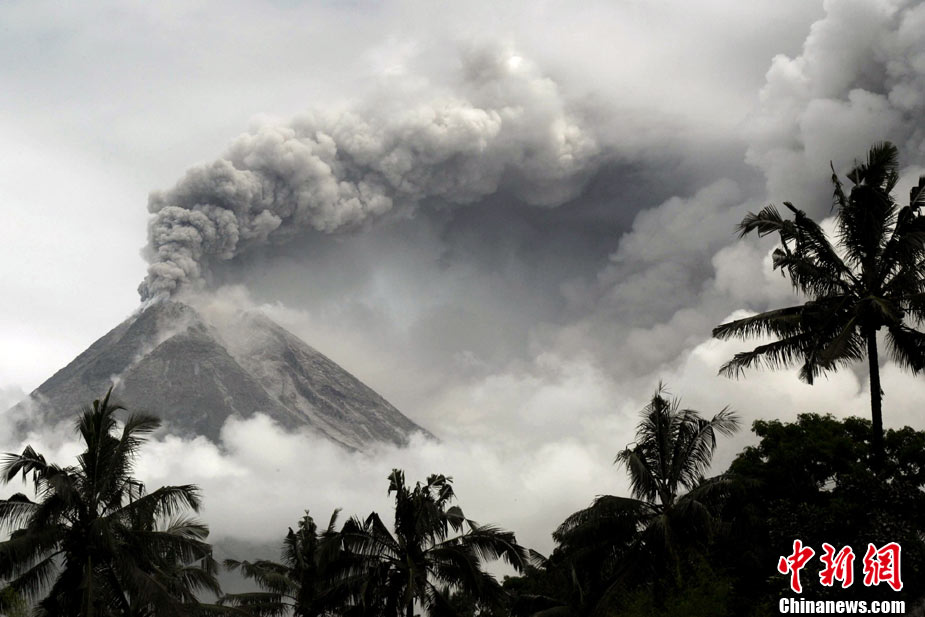 印度尼西亞中爪哇的默拉皮火山在印尼時(shí)間10月29日晨發(fā)生連續(xù)數(shù)次噴發(fā),將滾熱的云狀火山氣體和物質(zhì)噴到了3500米高的天空。