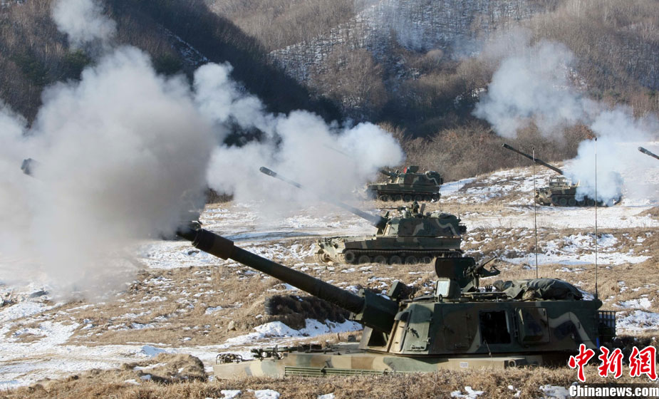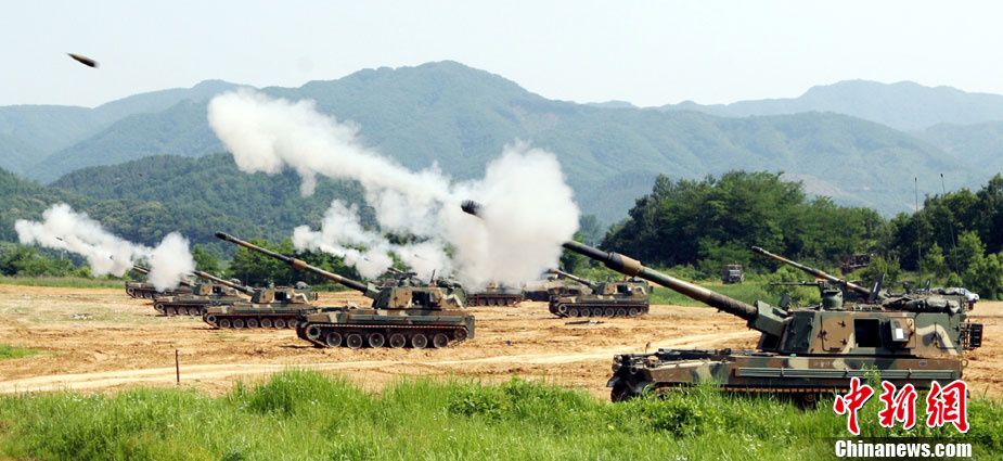 韓國(guó)軍方舉行海上實(shí)彈射擊訓(xùn)練