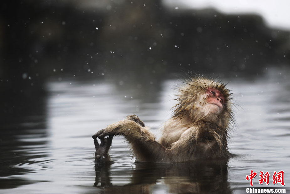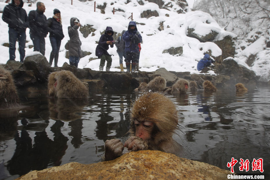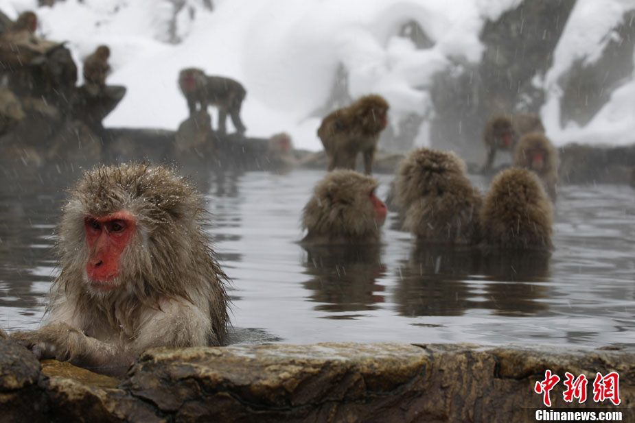 1月27日,日本本州島長野的狝猴公園里,眾多獼猴在此享受露天溫泉。