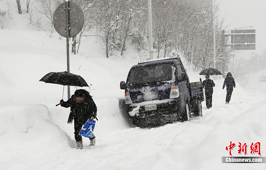 近日,韓國江原道東海岸地區(qū)遭遇罕見暴雪襲擊,數(shù)百間房屋因承受不住大雪的重量而紛紛倒塌,積雪厚度超過1米。目前降雪已經(jīng)停止,韓國政府派出1.2萬名士兵解救被困居民。