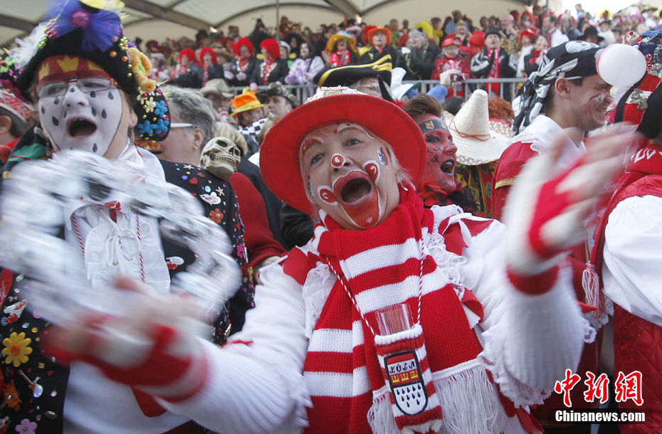 2011年3月3日,德國科隆,民眾在街頭慶�?駳g季開幕。當天,德國狂歡季拉開帷幕,今年的狂歡季以3日的“女人狂歡夜”開始,以9日“圣灰星期三”結束。