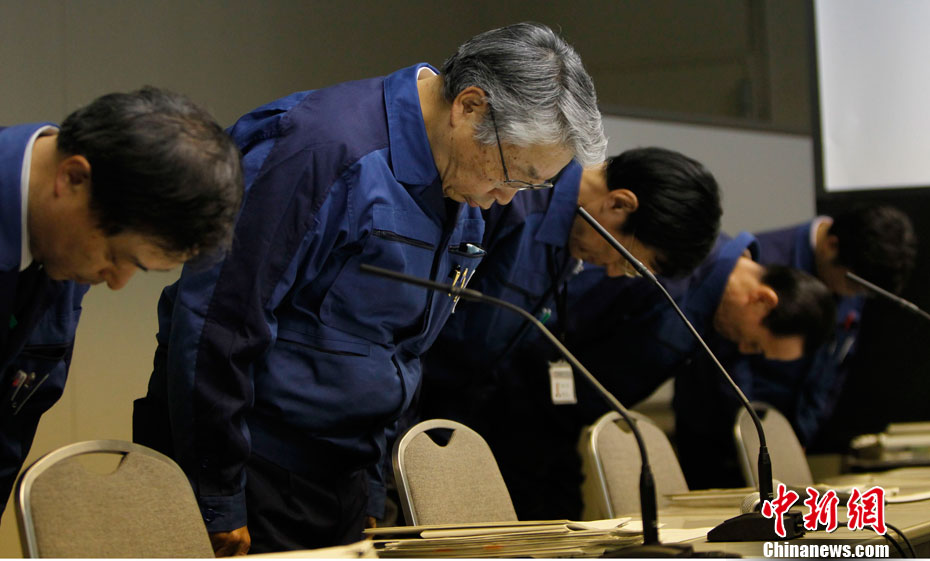 2011年3月28日,東京電力公司召開新聞發布會,通報福島核電站最新輻射情況,公司高管就“福島核電站積水輻射超標數值錯誤”的問題,向民眾鞠躬道歉。