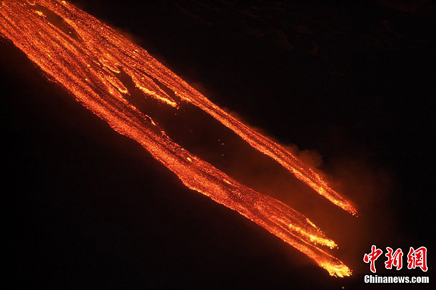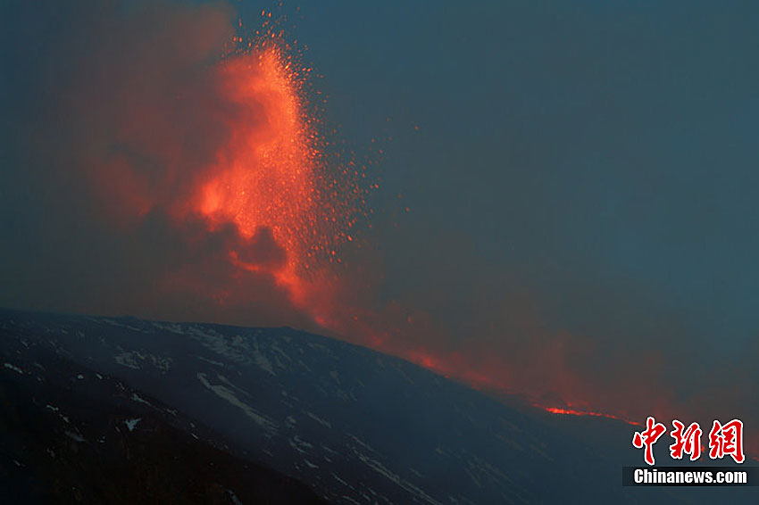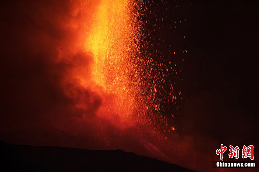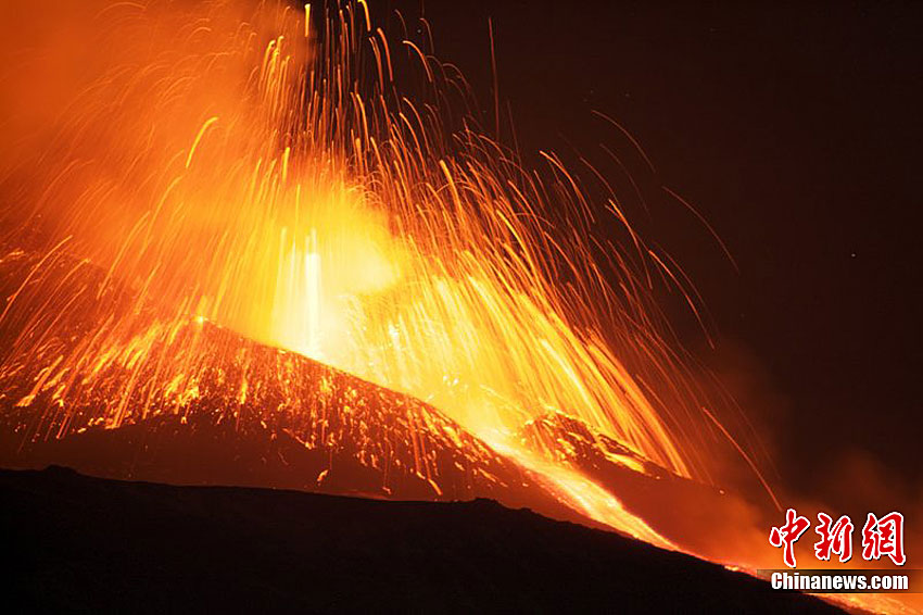 5月12日,意大利西西里島東岸的“埃特納”火山噴發,攝影愛好者拍到火山噴出熔巖的景象,除了冒出煙羽狀的火山灰之外,噴出的火熱熔巖流從火山西南口噴出,向火山四周蔓延,場面壯觀。這次噴發造成意大利阿韋利諾省卡塔尼亞-豐塔納羅薩(Catania-Fontanarosa)的國際機場暫時關閉。