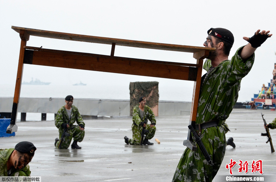 2011年7月29日,海參崴,俄羅斯海軍正在為海軍節(jié)慶典進(jìn)行預(yù)演。