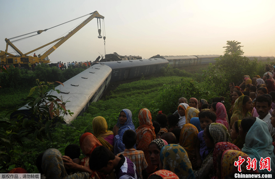 8月1日,在印度西孟加拉邦馬爾達地區(qū),民眾在火車相撞事故現(xiàn)場圍觀。據(jù)印度媒體報道,印度東部的西孟加拉邦7月31日晚7時左右發(fā)生兩列火車迎頭相撞事故,其中一列火車車頭出軌,目前已知造成1人死亡,約50人受傷。