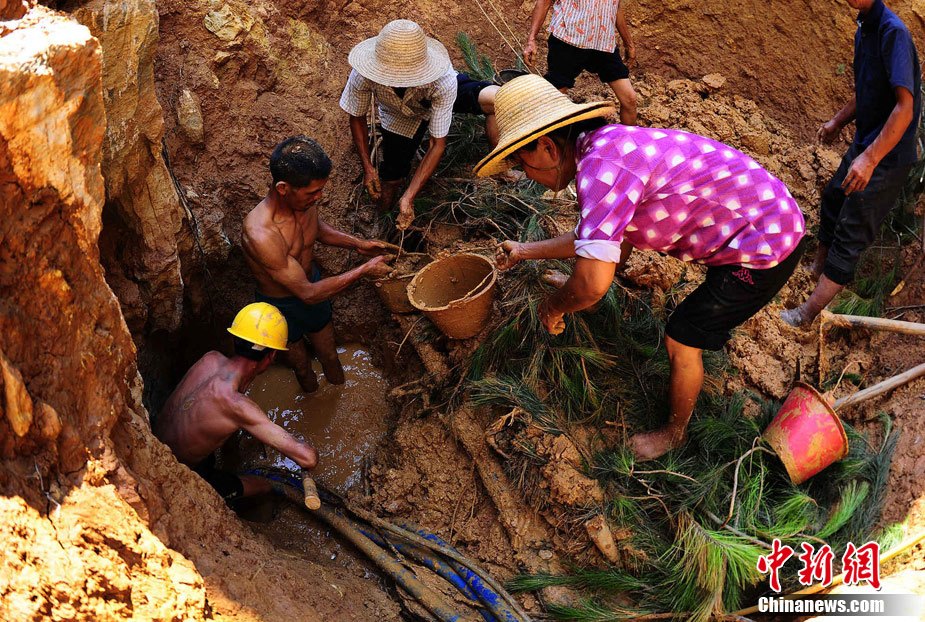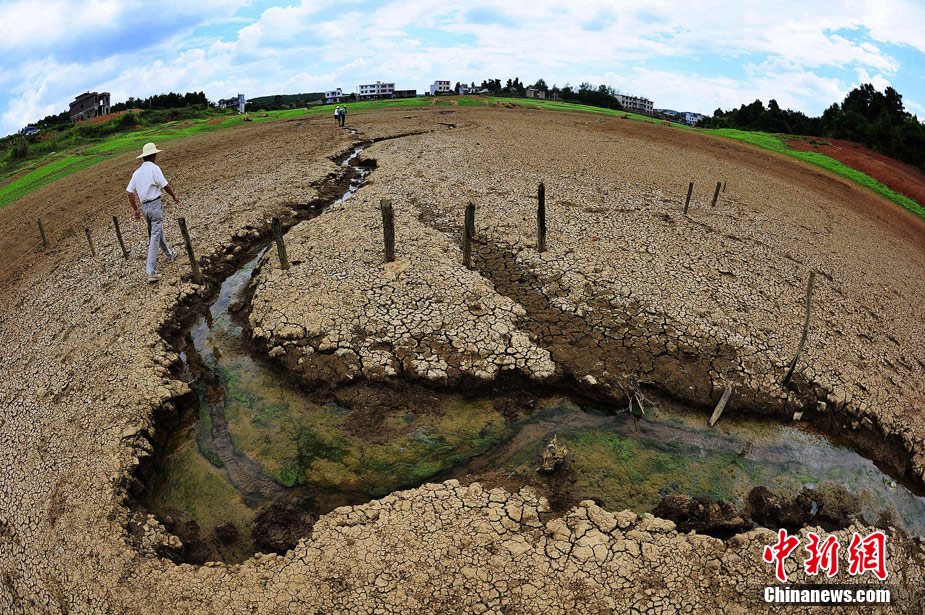 7月底,湖南桂陽縣樟木鄉關沖村干涸的水庫,一位村民在打最后的一點水澆灌。連日來,受連續高溫和降雨偏少影響,湖南省各地旱情持續發展。據湖南省防汛抗旱指揮部介紹,湖南桂陽縣等27個縣(市)遭遇重旱,其中24個縣(市)達到氣象干旱特旱等級。