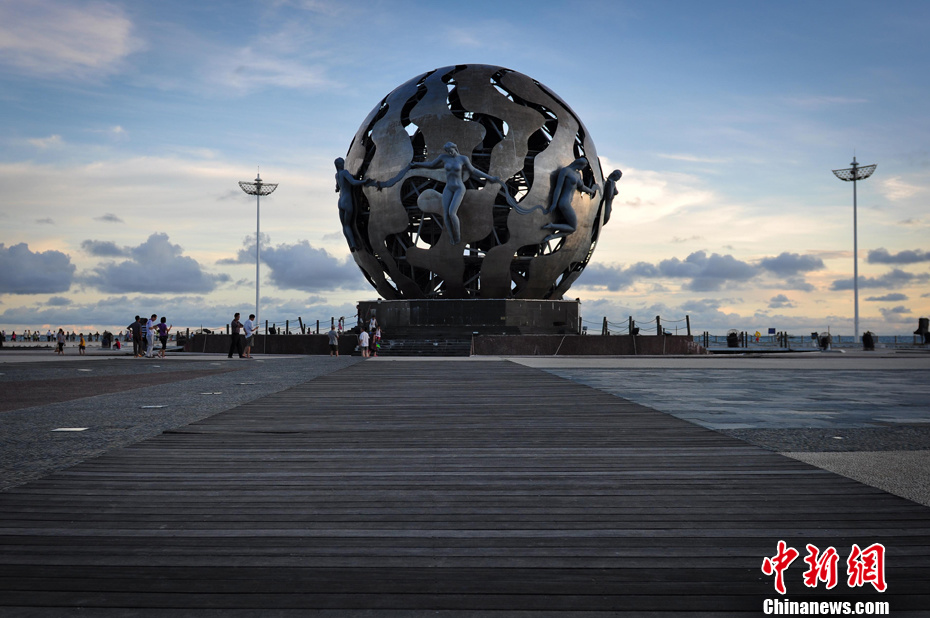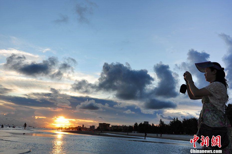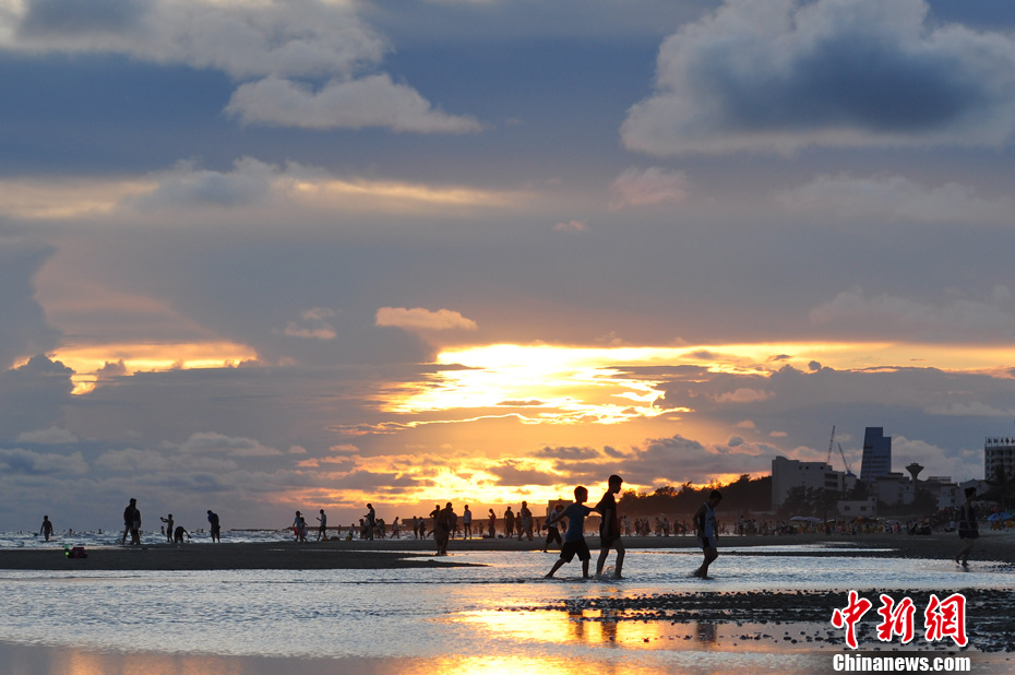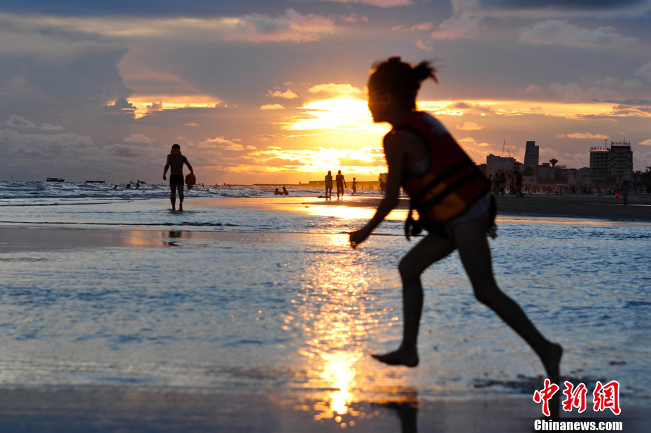 8月3日,廣西北海銀灘景區游人如織,濱海風光在黃昏落日的映襯下顯得更加迷人。北海銀灘1992年被列為國家級旅游度假區,為中國的35個“王牌景點”之一,享有“天下第一灘”的美譽。洪堅鵬 攝