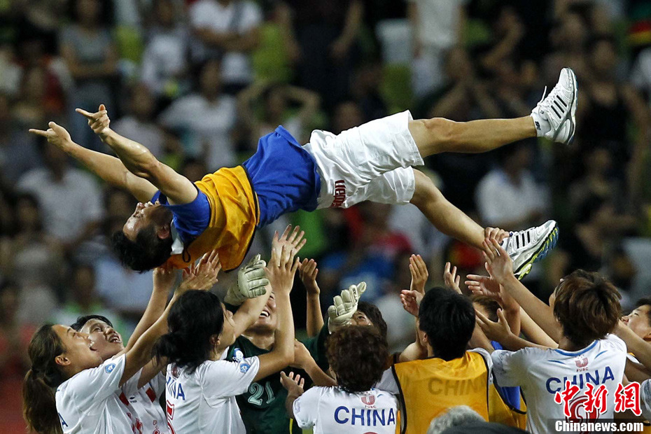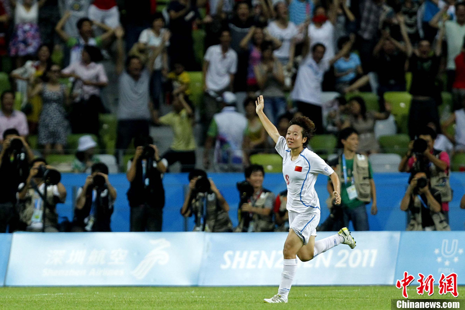 8月21日夜,深圳第26屆世界大學生夏季運動會女足決賽展開爭奪,中國姑娘沒有讓現場3萬多球迷失望,在先失一球的情況下,經過2個小時的苦戰,最終以2比1力克“老冤家”日本隊,時隔18年后再度捧起大運女足冠軍獎杯。圖為中國隊登上領獎臺。中新社發 富田 攝