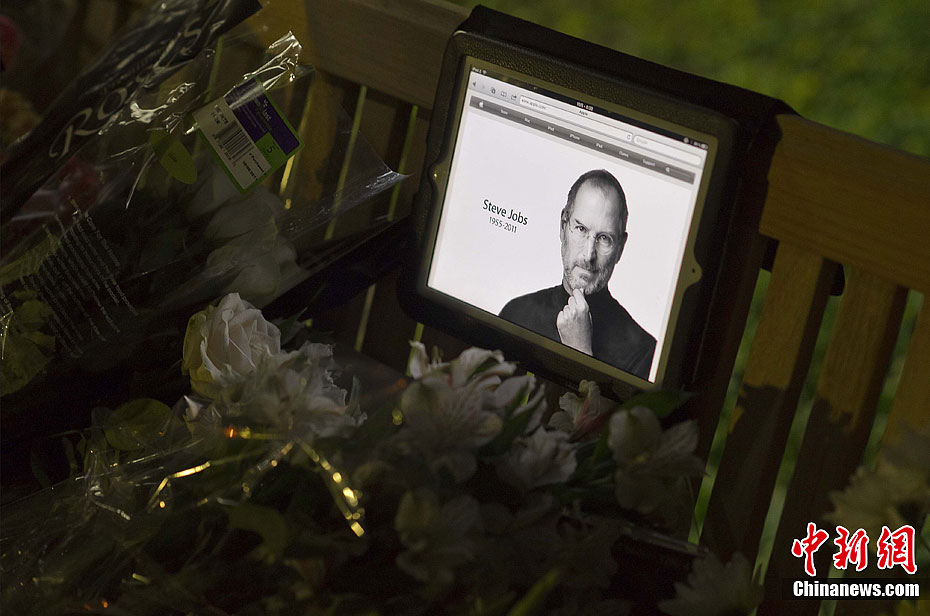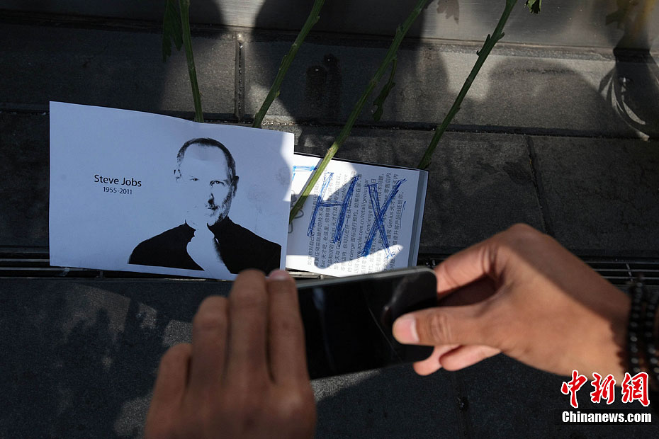 北京時間10月6日凌晨,蘋果公司宣布喬布斯逝世。蘋果前CEO喬布斯10月5日在美國去世,蘋果迷們當晚通過各種方式紀念喬布斯。中新社發(fā) 張浩 攝