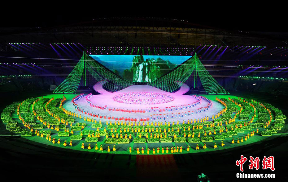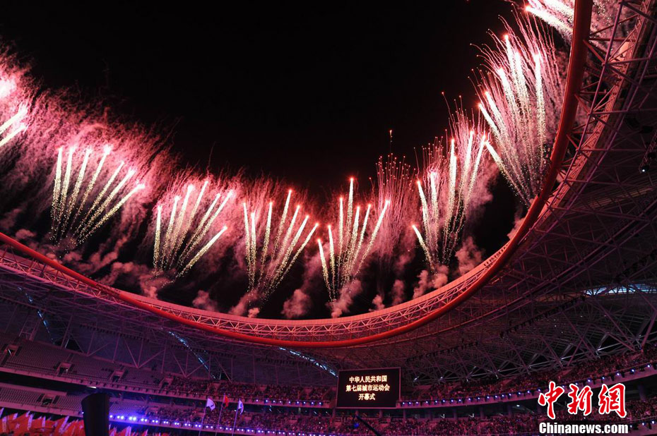 10月16日晚,第七屆全國城市運(yùn)動會在江西南昌開幕,長達(dá)2個多小時的開幕式氣勢恢宏,整場文藝表演運(yùn)用高科技手段,配合璀璨奪目的煙花效果,為現(xiàn)場數(shù)萬名觀眾獻(xiàn)上了一場的視覺盛宴。劉占昆 攝