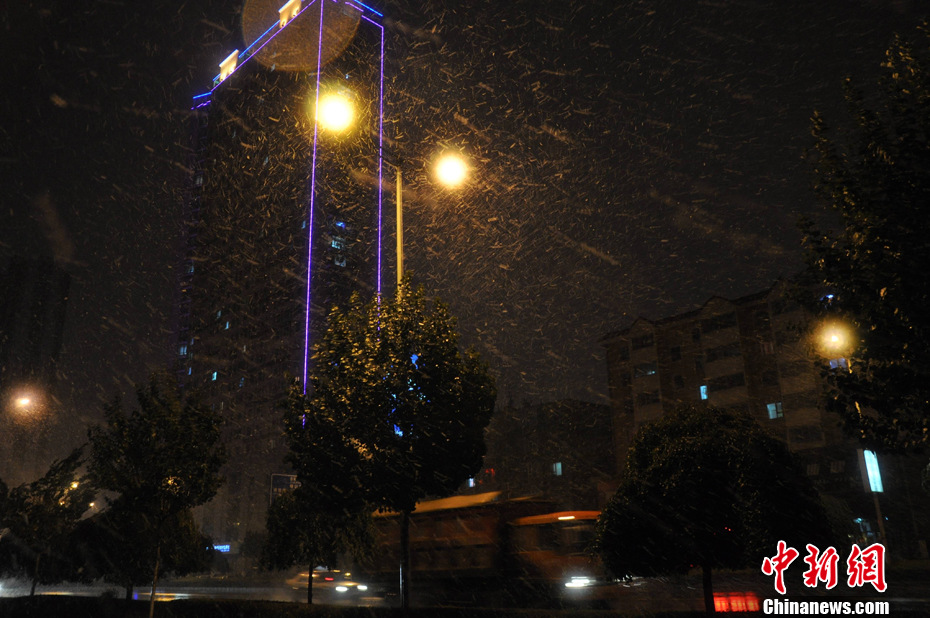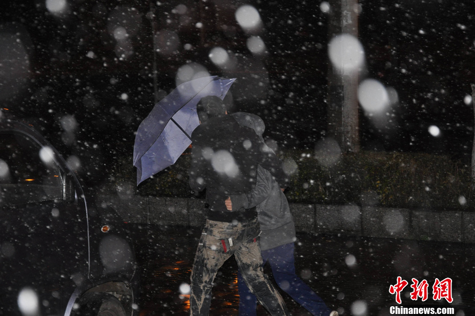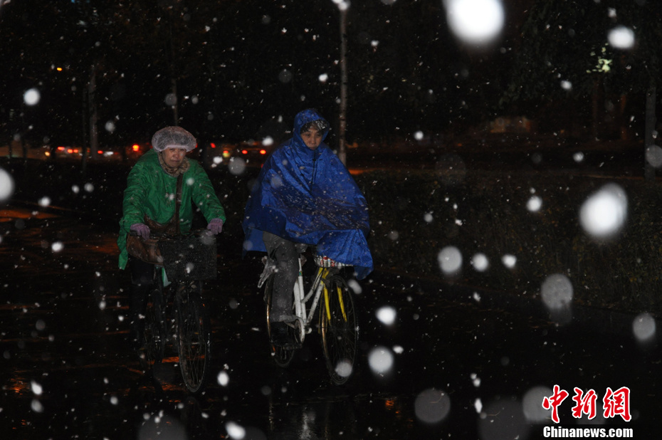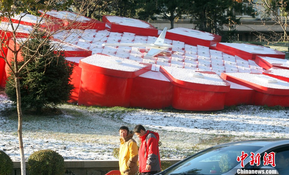2011年10月17日凌晨,哈爾濱市降下深秋時節首場雪,氣溫也隨之大幅下降。中新社發 靖陽 攝 圖片來源:CNSPHOTO