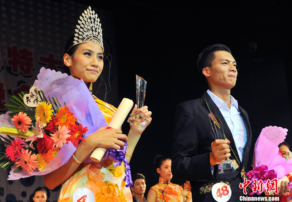 10月17日,“2011滁州·環球國際模特大賽中國總決賽”在安徽滁州大劇院精彩上演。來自上海、杭州、青島、沈陽、合肥等全國20個分賽區選拔的55名男女選手,當晚在T型臺上爭相斗艷,角逐中國賽區冠亞季軍、十佳選手及十個單項獎。據悉,此次比賽選出的40名優秀選手將代表中國,參加此后在上海舉辦的國際大賽,與來自于與波蘭、法國、捷克等國家的準模特兒一起角逐國際模特總冠軍。圖為:10月17日,獲獎選手在領獎臺上向觀眾致意。中新社發 王家國 攝 圖片來源:CNSPHOTO