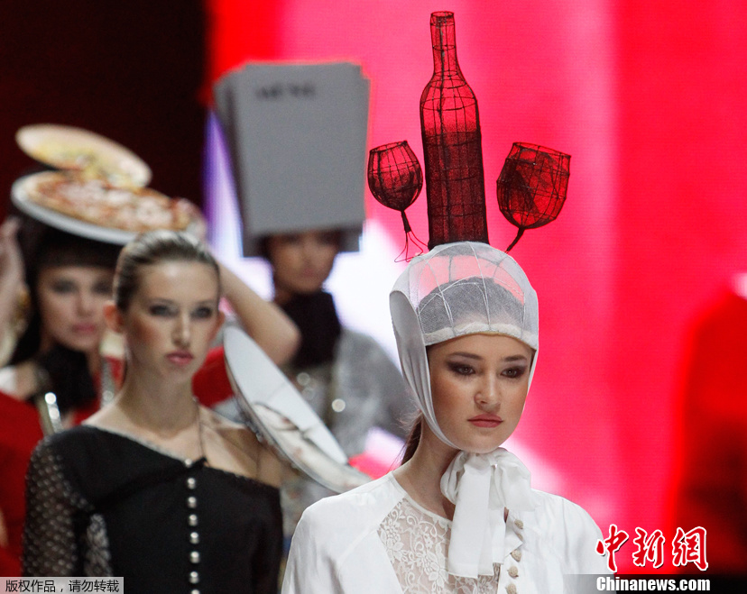2011年10月18日,在俄羅斯莫斯科舉辦的俄羅斯青年時裝比賽的總決賽上,模特們身著“怪異”的服飾進行展示。