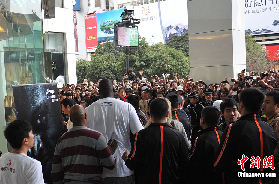 10月20日,前NBA巨星沙奎爾·奧尼爾造訪昆明,受到大批球迷的追捧。這是奧尼爾“再見-傳奇”中國行的最后一站。中新社發 劉冉陽 攝