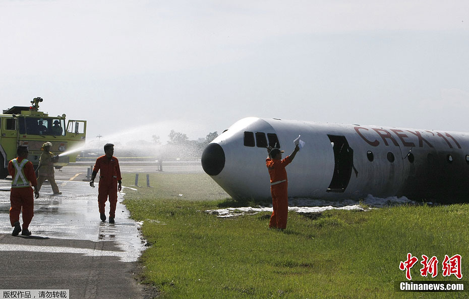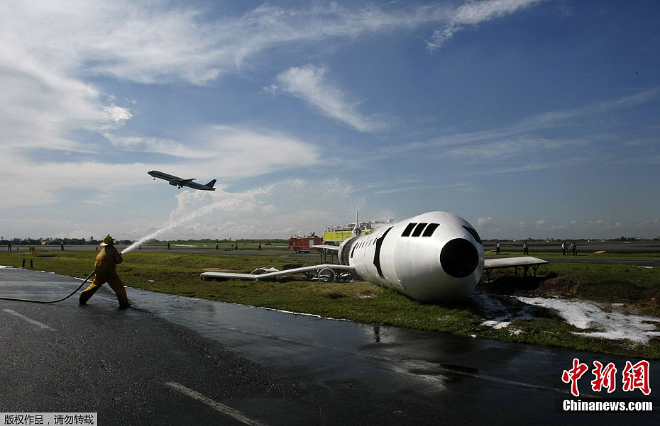 10月20日,菲律賓帕賽市的尼爾阿基諾國際機場正在進行緊急著落模擬演練。類似演練每兩年年要進行一次,來測試機場搜尋和救援人員在緊急情況下是否準備完善。