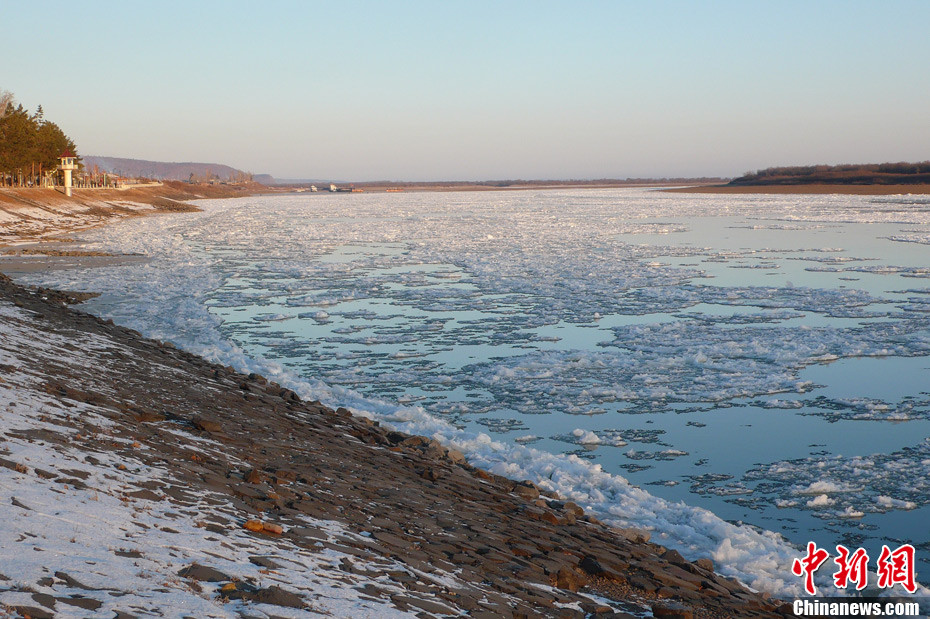 11月6日,中俄界河黑龍江大興安嶺地區呼瑪段出現大塊流冰,比去年同期晚10天。受冷空氣影響,連日來黑龍江沿岸氣溫降到零下10攝氏度左右。中新社發 邱齊龍 攝 圖片來源:CNSPHOTO