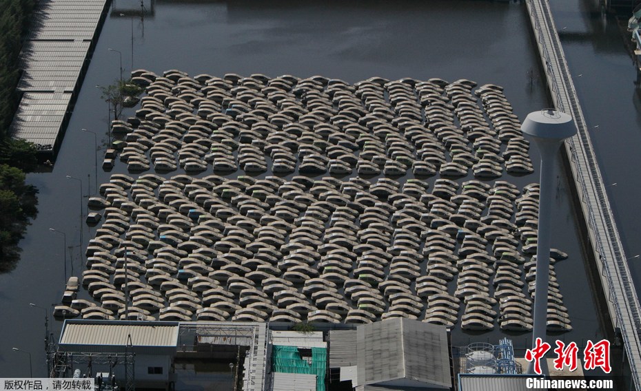 11月22日,泰國大城府洛察納(Rojana)工業區的本田汽車工廠,覆滿污泥的汽車停放在場地上。這場泰國半個世紀以來最嚴重的洪水已逐漸消退,洪災已造成至少600人喪生,工業和制造業損失數額以億美元計,預計洪水還將對泰國經濟增長造成1個百分點左右的影響。