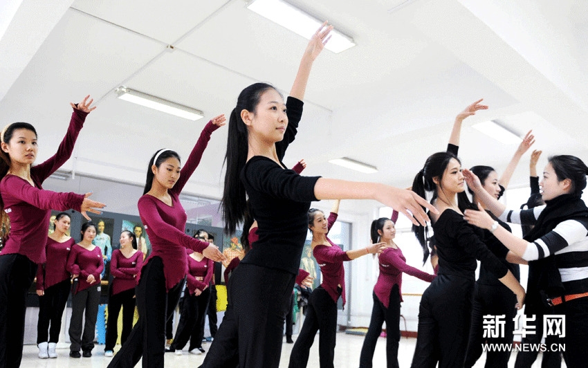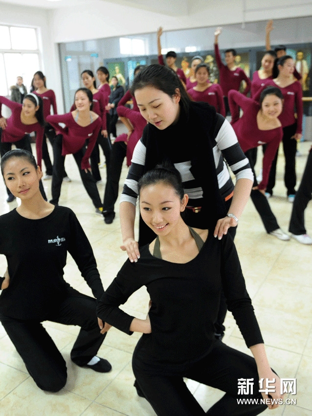 同學(xué)們?cè)谶M(jìn)行形體練習(xí)(12月20日攝)。近日,來自山東省各地的100多名高三藝術(shù)類考生聚集到青島東方麗人模特學(xué)校,進(jìn)行形體、舞蹈、化妝、表演等科目的強(qiáng)化訓(xùn)練,備戰(zhàn)2012年高考模特編導(dǎo)、服裝表演、空乘等專業(yè)的考試。據(jù)了解,2012年模特、空乘類專業(yè)考試將在元月下旬開始,山東省預(yù)計(jì)將有1000多名考生參加,考生數(shù)量與上一年基本持平。張晨霖 攝 圖片來源:新華網(wǎng)