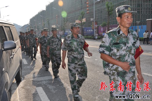 7月5日至7日,為確保2011貴州•劍河仰阿莎文化節(jié)圓滿(mǎn)完成,該縣抽調(diào)交警、消防、武警、民警、聯(lián)防等各警種560人密切配合,共同維護(hù)現(xiàn)場(chǎng)治安秩序、交通秩序和應(yīng)對(duì)各種突發(fā)事件,確保活動(dòng)順利開(kāi)展。圖為聯(lián)防人員巡邏情景。(石慶偉)
