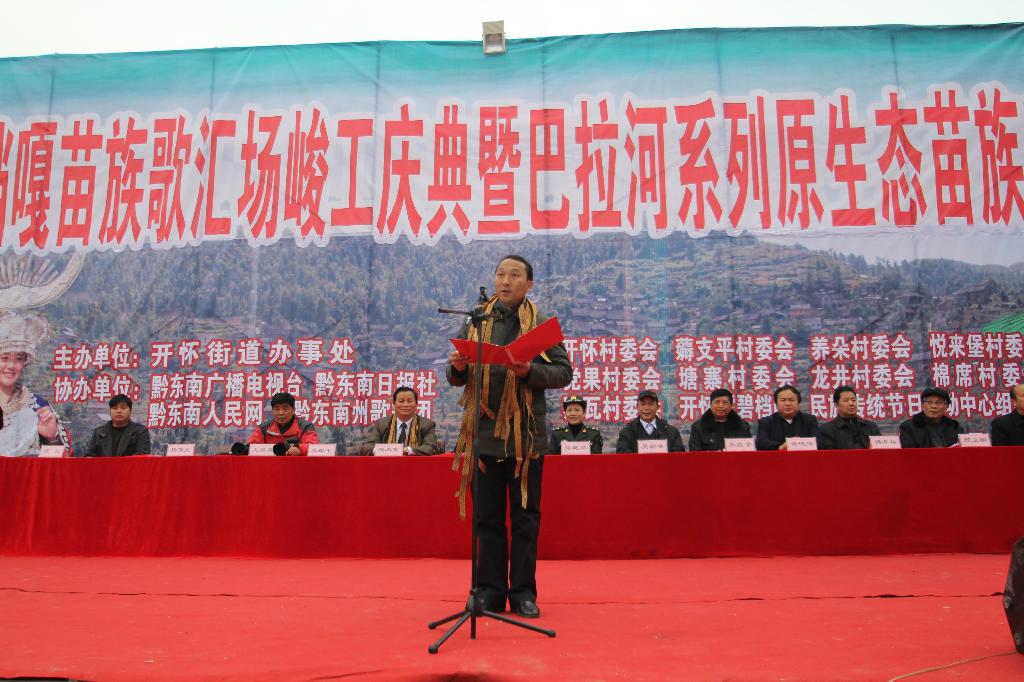 據黔東南州人民政府網 12月13日,凱里市開懷碧檔嘎苗族歌匯場竣工慶典暨苗歌對唱大賽在市開懷街道隆重舉行。省人大常委會原副主任、省苗學會會長楊光林,州委宣傳部常務副部長楊再新,州人大民族委員會主任張學昌,州文化產業辦公室副主任徐德海,原市人大副主任楊保元,市人民政府副市長吳琳平,州苗學會副會長龍昌海,凱里市苗學會會長顧永明、中國人民解放軍北京軍區戰友文工團團長侯艷琴出席慶典儀式。開懷街道所轄九個村八大組織以及部分群眾代表參加了慶典儀式。儀式由開懷街道辦事處主任龍遠平主持。