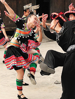 黔東南素有“歌舞海洋”的美譽,各民族歷來以能歌善舞著稱。苗族有高亢激昂、熱情奔放的“飛歌”,也有委婉動聽、抒情優(yōu)美的“游方歌”,還有質(zhì)樸無華的“古歌”、“酒歌”、“大歌”,其調(diào)式不一,各具韻味,有很強的藝術感染力。侗族的歌大多旋律優(yōu)美,曲調(diào)多樣,猶如潺潺流水,有合唱歌曲,也有獨唱歌曲,特別是無伴奏、無指揮的多聲部侗族“大歌”,以其古樸優(yōu)美的曲調(diào)、獨特的演唱方式享譽海內(nèi)外。
