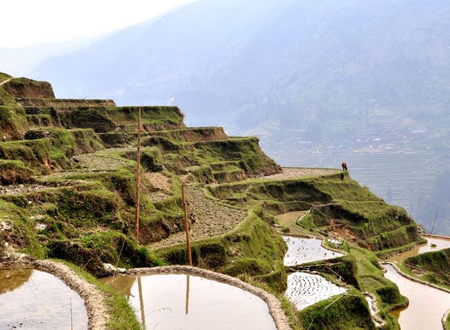 梯田從加車河谷繞著山梁向上攀升,像一座天梯連接著天地間,梯帶高低落差近千米。加榜梯田一年四季都是景。