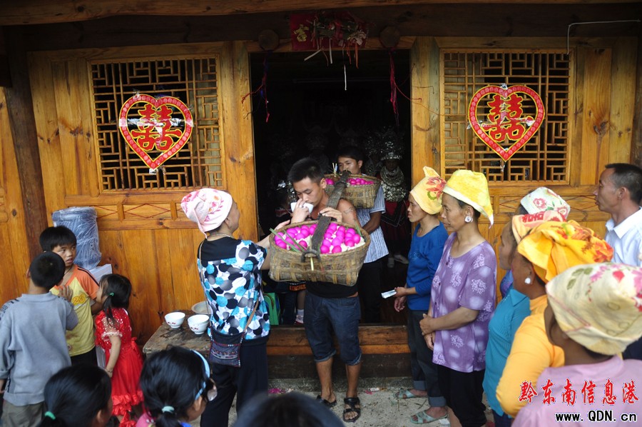 黔東南州苗族自治州臺江縣苗族婚慶習俗,場面非常熱鬧。