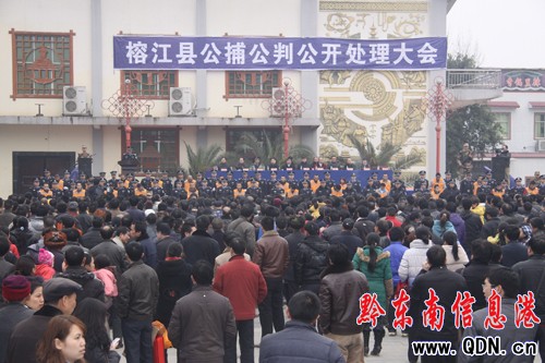 春節來臨,為了震懾犯罪,營造安定、祥和的節日氣氛,1月25日,榕江縣召開公捕公判公開處理大會,對最近抓獲的涉嫌搶劫、傷害、盜竊等20名犯罪嫌疑人公開宣布逮捕決定,對觸犯盜竊、尋釁滋事等罪的6名犯罪分子進行公開宣判。