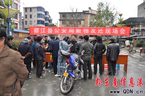 3月18日上午,榕江縣公安局在縣城街心花園舉行贓物集中發(fā)還現(xiàn)場會,發(fā)還該局春節(jié)期間通過破案追繳的56700元被盜現(xiàn)金以及筆記本電腦(4臺),數(shù)碼相機(2部)、手機(6部)、摩托車(1輛)等物。(吳承華 羅茜 攝)