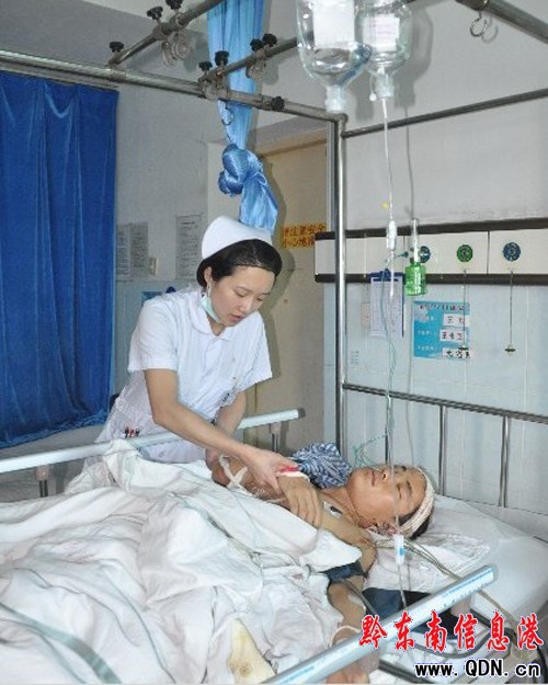 5月13日下午,記者經過多方打聽最終在黔東南州醫院住院大樓骨科病區找到了“消失哥”。他躺在床鋪上,正在輸液,像是進入了夢鄉一般。管床的王醫生告訴記者,他體內體外,傷痕累累,頭部等部位是外傷,而其肺部和腎臟則被挫傷,腎臟內還有大量積水。此外,跟骨出現骨折。“我們檢查他頭部,發現頭內無流血現象,但不排除隨著時間推延,有血逐漸滲入的可能性。”王醫生說。