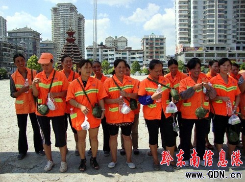 入夏以來,凱里地區持續高溫酷暑天氣,奮戰在一線的清潔工人往往頂著烈日工作,工作難度超出以往。為此,連日來,凱里市環衛局組織“慰問隊”,開展針對環衛工人的“送清涼活動”,為全市965名環衛工人送去了水壺、礦泉水、消暑藥品等,總價值四萬余元,讓環衛工人們在高溫酷暑中感受一絲清涼。(羅茜)