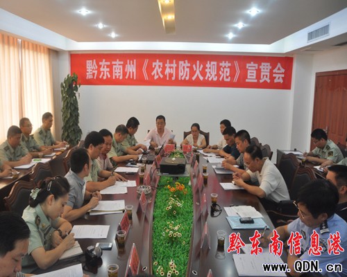 7月20日,貴州省宣貫《農村防火規范》會在黔東南州召開。省消防總隊李立志副總隊長、防火部田聰副部長、宣傳處許詠雪處長,省住房與建設廳王文主任科員,黔東南州公安局朱遠奎副局長、州消防支隊傅勤勇支隊長、戴波政委出席此次的宣貫會。會議由黔東南州人民政府副秘書長羅健主持,支隊防火處業務骨干、州住建局、州安監局等州直機關各部門主要負責人參加會議。