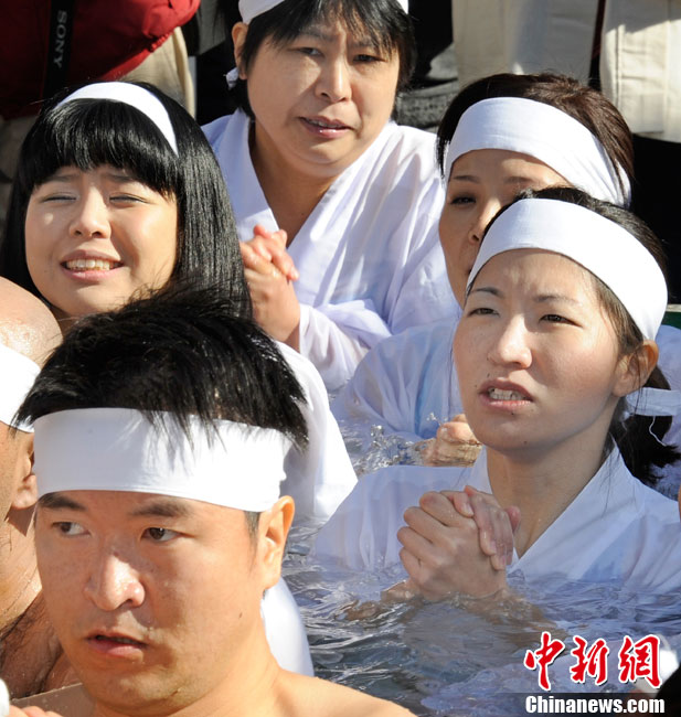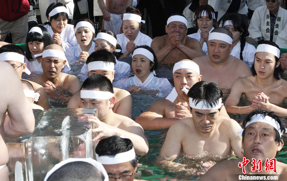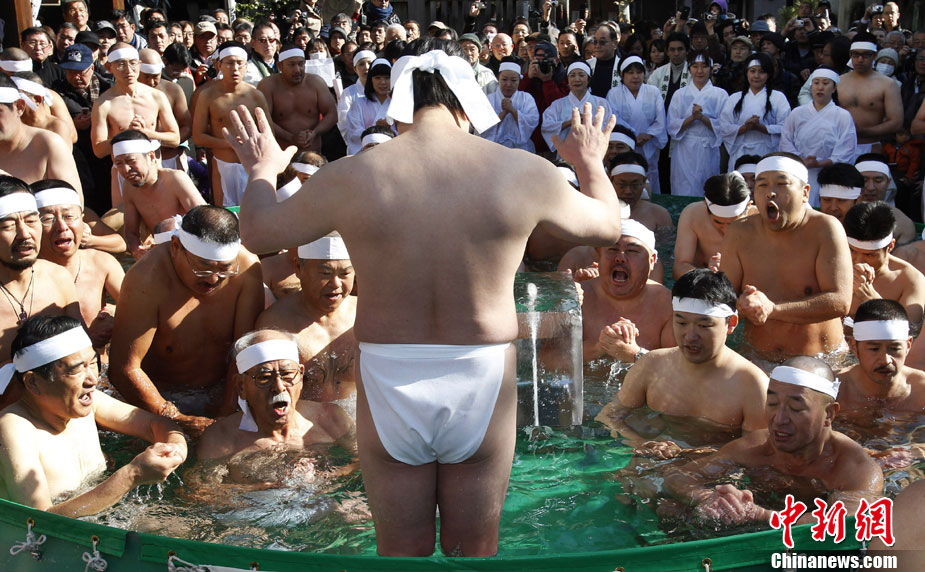 日本民眾進行冬日“冷水浴”祈求健康