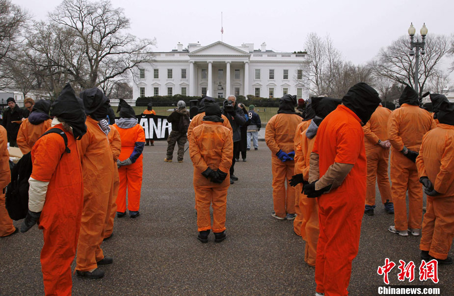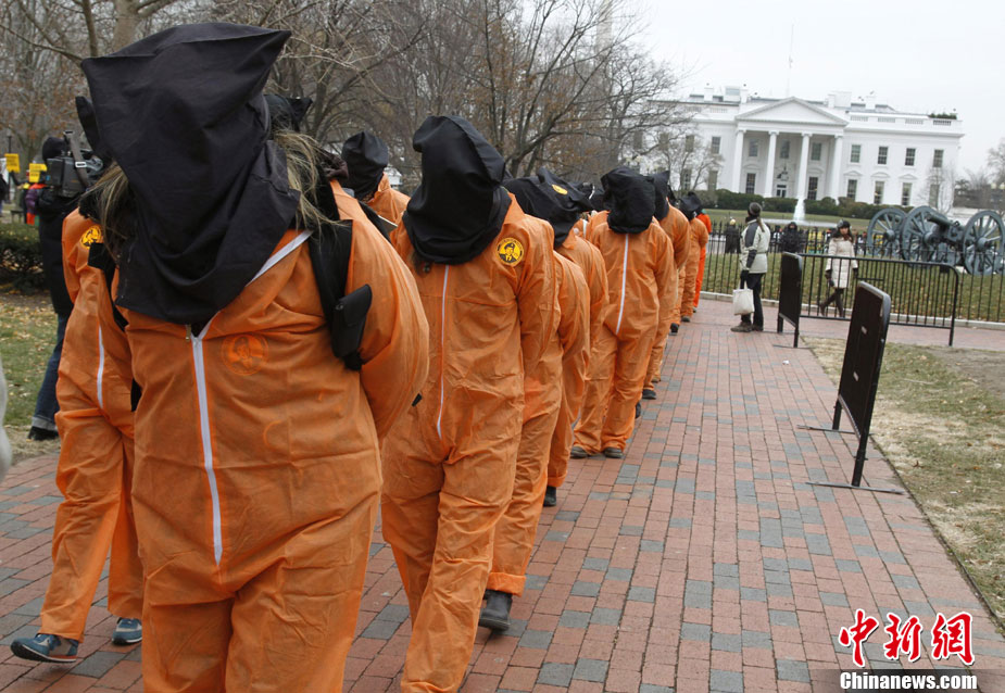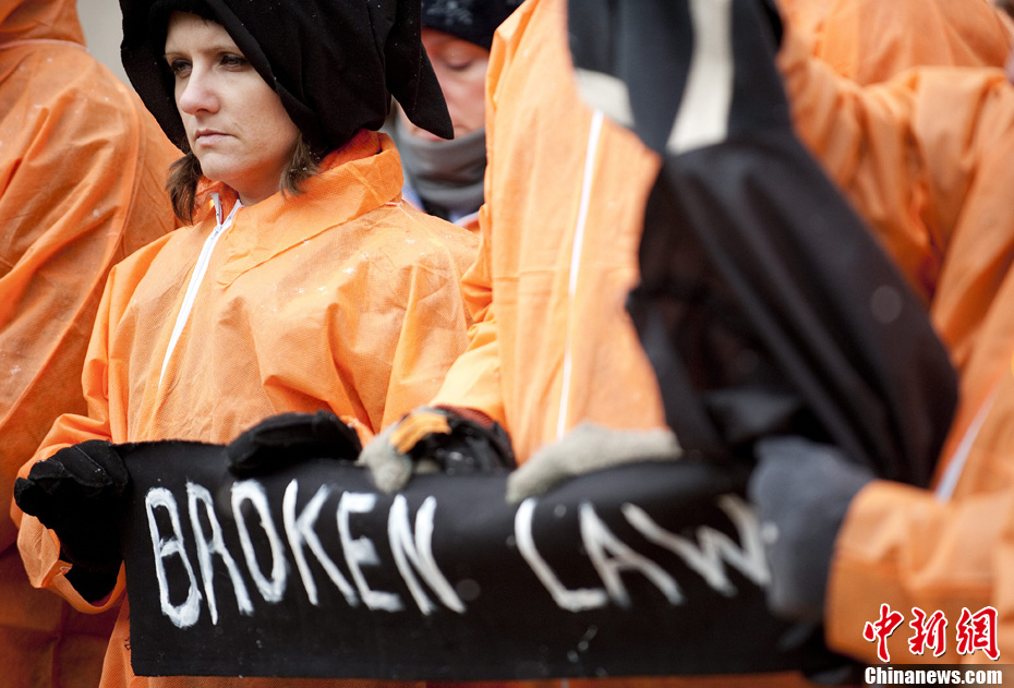 美示威者扮囚犯要求關閉關塔那摩監(jiān)獄