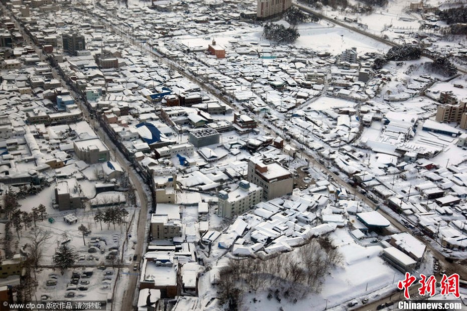 2月13日,韓國江原道東海岸地區普遍下起大雪,大雪堆積形成暴雪,韓國積雪量超過100厘米,導致道路被封、交通大亂,車禍冰凍現象嚴重。創下自1911年開始進行氣象觀測以來的最高紀錄。