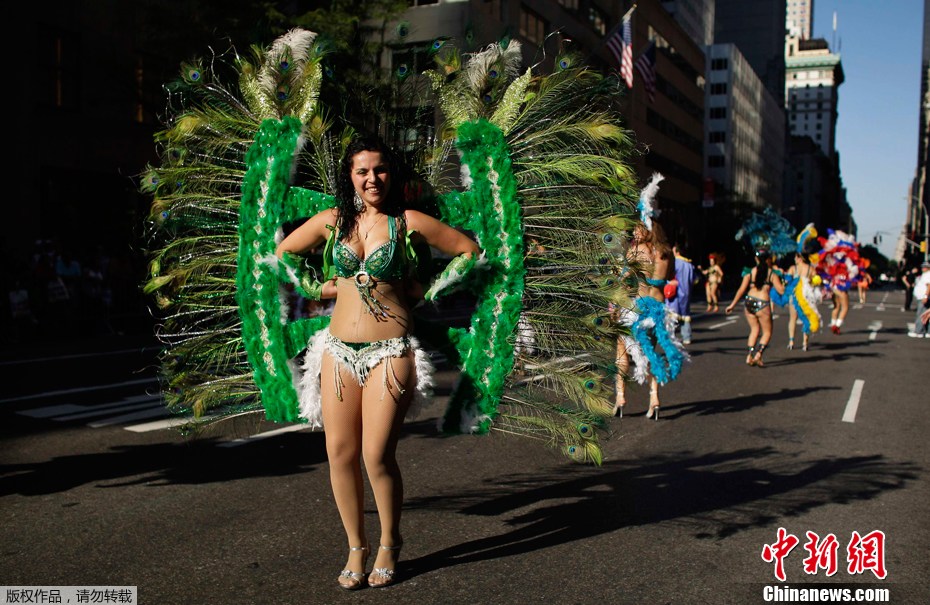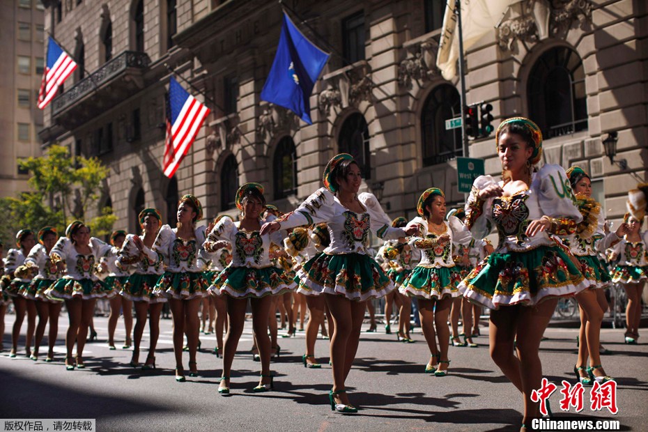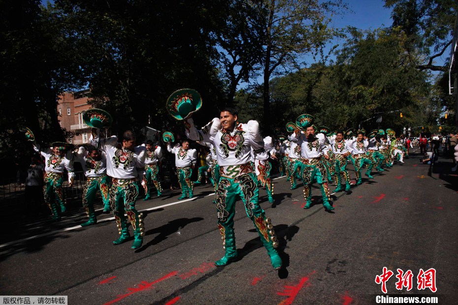 2011年10月9日,在美國紐約,人們身著盛裝參加一年一度的“西班牙日”大游行。