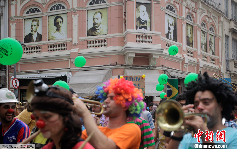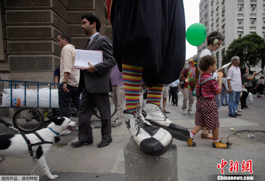 2011年12月7日,在巴西里約熱內盧,來自世界各國的小丑參加了一年一度的國際小丑大游行。