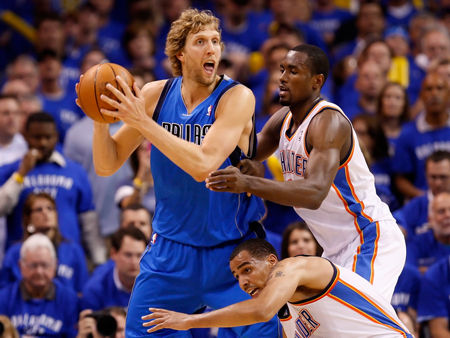 達拉斯小牛隊在客場成功逆轉拿到西部決賽的賽點。雖然俄克拉荷馬城雷霆隊在主場早早建立領先優勢,但德克-諾維茨基得到全場最高的40分,他引領球隊第四節用10-0反攻把比賽拖入加時賽。杰森-基德加時賽命中關鍵三分,小牛隊在西部決賽第四戰客場以112-105擊敗雷霆隊。小牛隊以3-1的總比分拿到賽點,雙方的第五場將回到達拉斯進行。